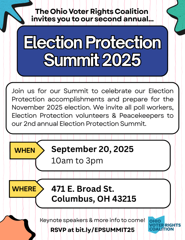 Please join the Ohio Voter Rights Coalition for our 2nd annual Election Protection Summit.